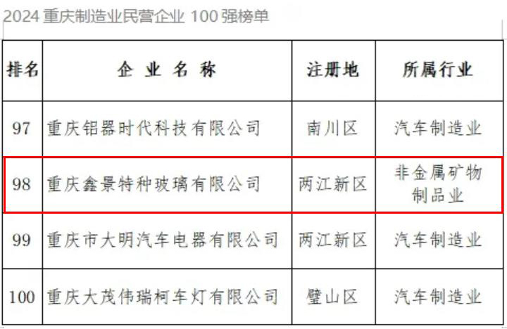 我公司實(shí)力上榜,榮登2024“重慶制造業(yè)民營(yíng)企業(yè)100強(qiáng)榜單”。